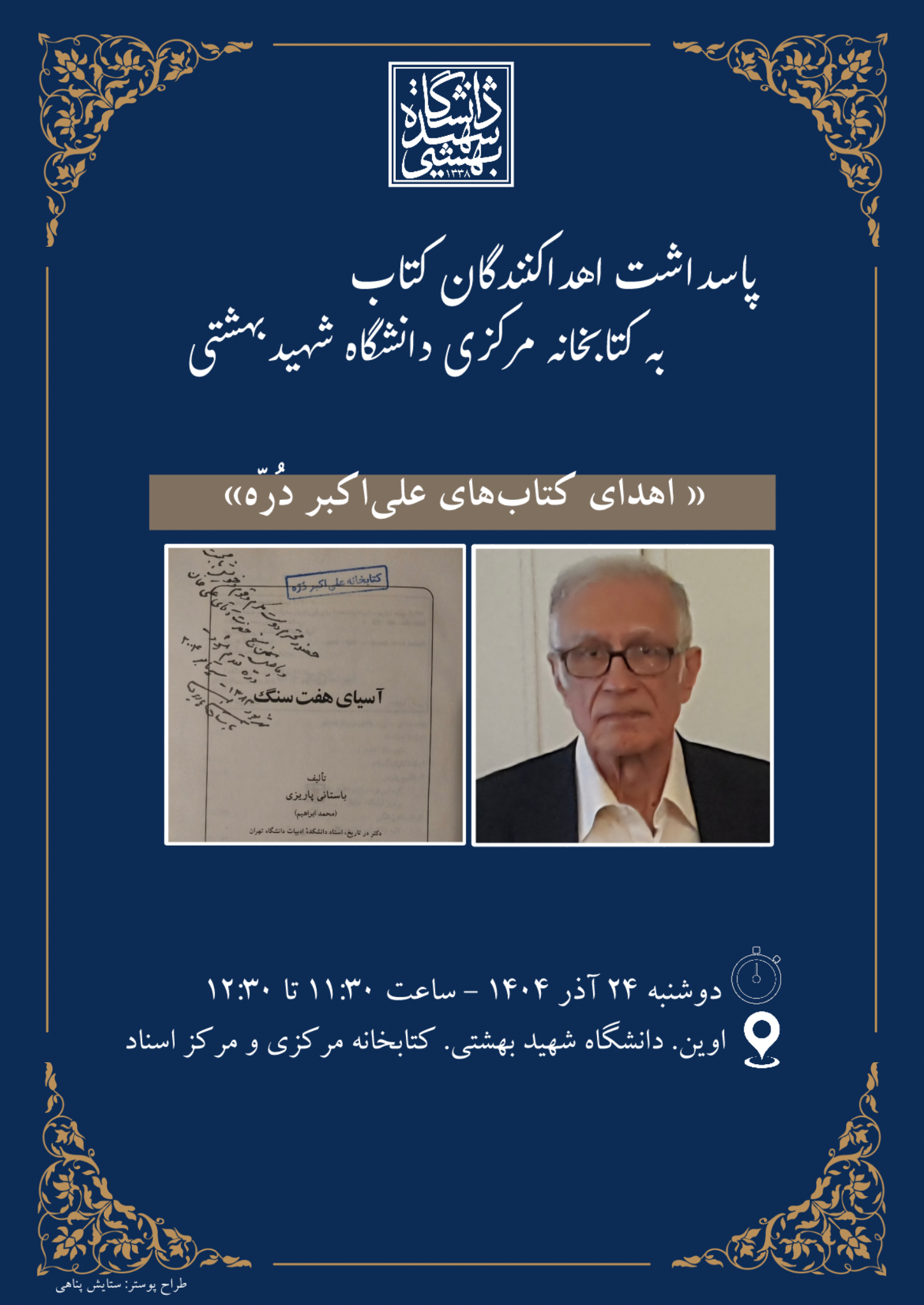 پاسداشت اهداکنندگان کتاب به کتابخانه مرکزی دانشگاه شهید بهشتی: مرحوم علی اکبر درهّ