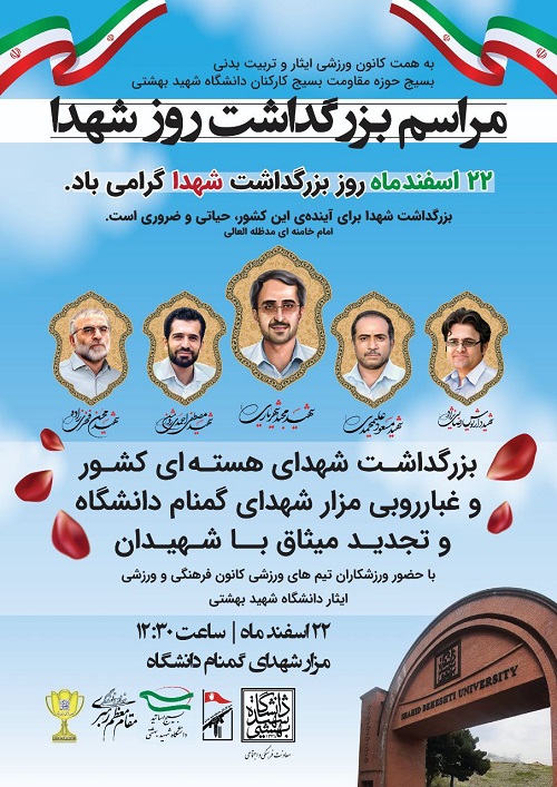 مراسم بزرگداشت روز شهدا، 22 اسفندماه 1402 در دانشگاه شهید بهشتی برگزار می‌شود.